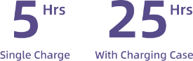 Listen up to 5 hours using the earbuds alone. Total 30 hours battery life with the charging case.